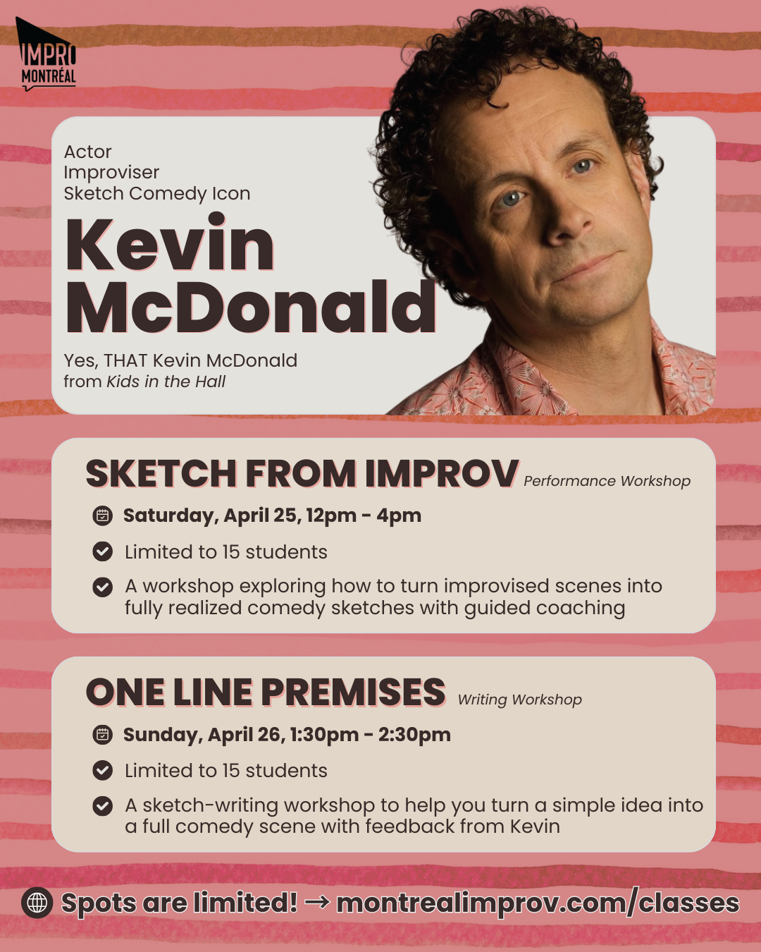 Want to step outside your comfort zone, meet new people, and explore your creativity? Try a class at Montreal Improv! Improve your public speaking, boost your confidence, and have fun in a warm, encouraging environment.