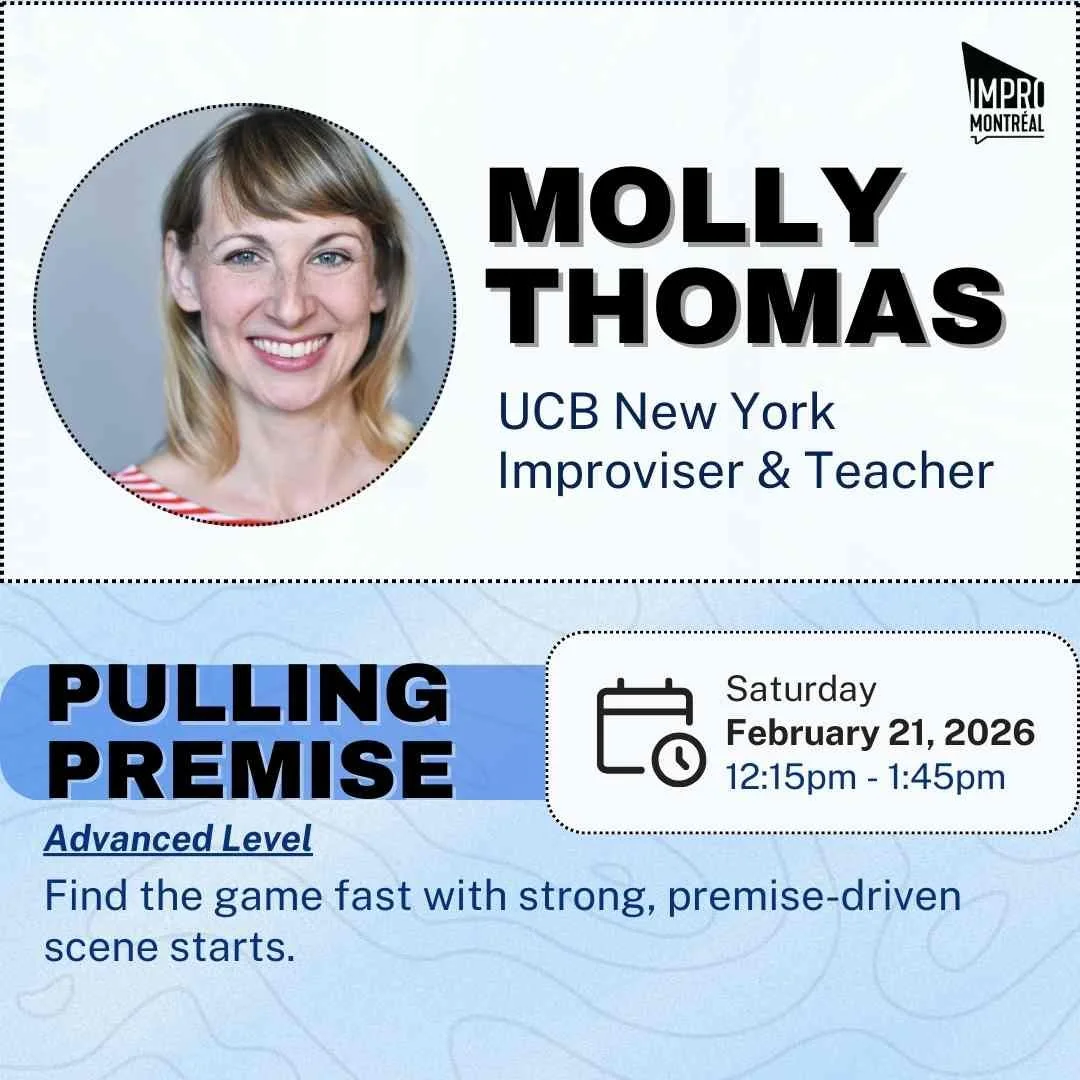 A clearly stated premise-based initiation can get a scene right into the thick of the funny. In this workshop, we'll address the difference between organic and premise-based initiations and practice harvesting the funniest ideas from the opening. We'll work on nailing down game at the tops of scenes so that we can get right to playing that game.