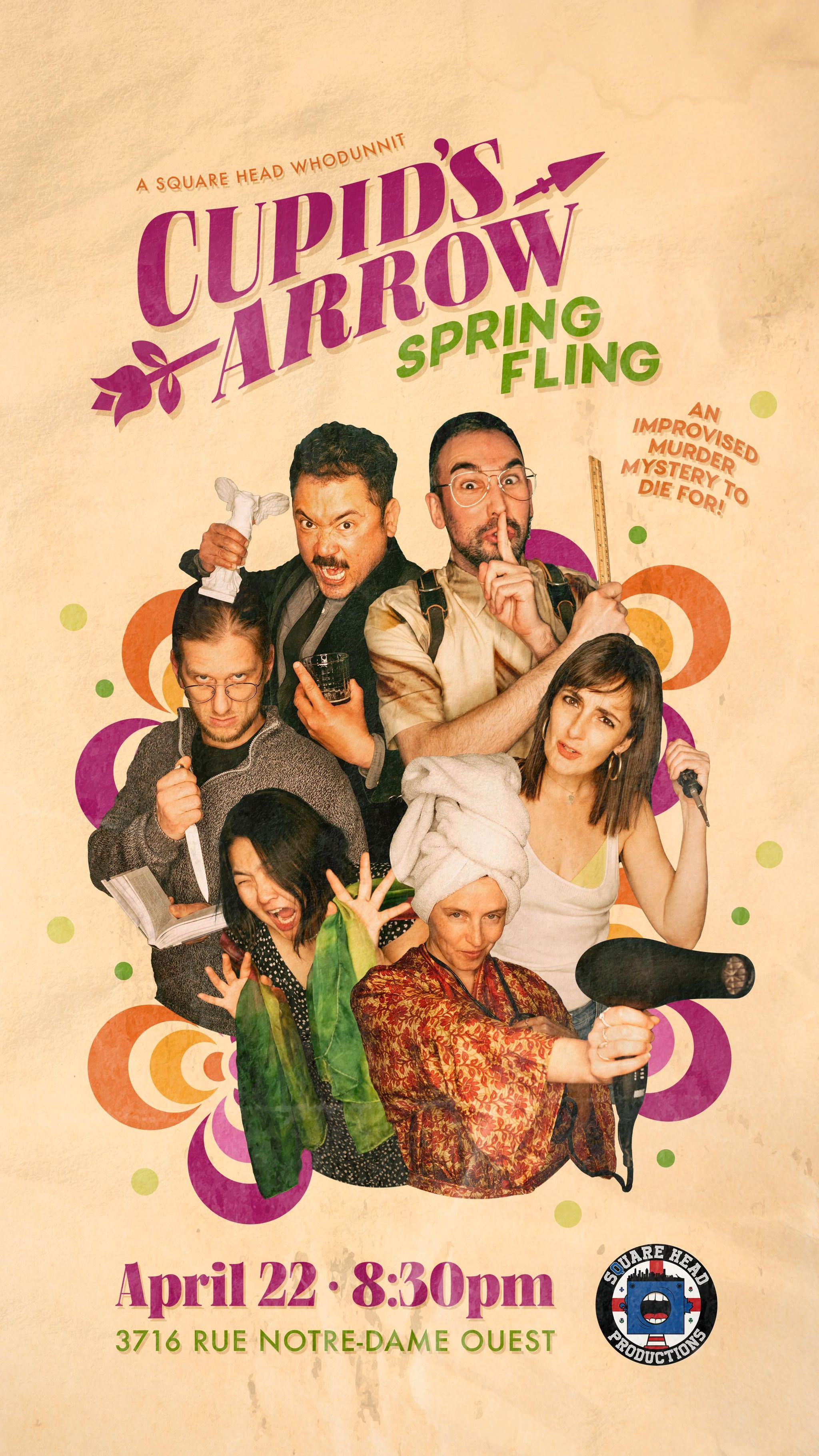 Welcome to the Spring Fling, the snow has melted, the flowers are blossoming, the birds are chirping and murder and romance are in the air. Join six improvisers on a journey of love, lies, and death at the spring edition of Cupid's Arrow, an Improvised whodunnit.