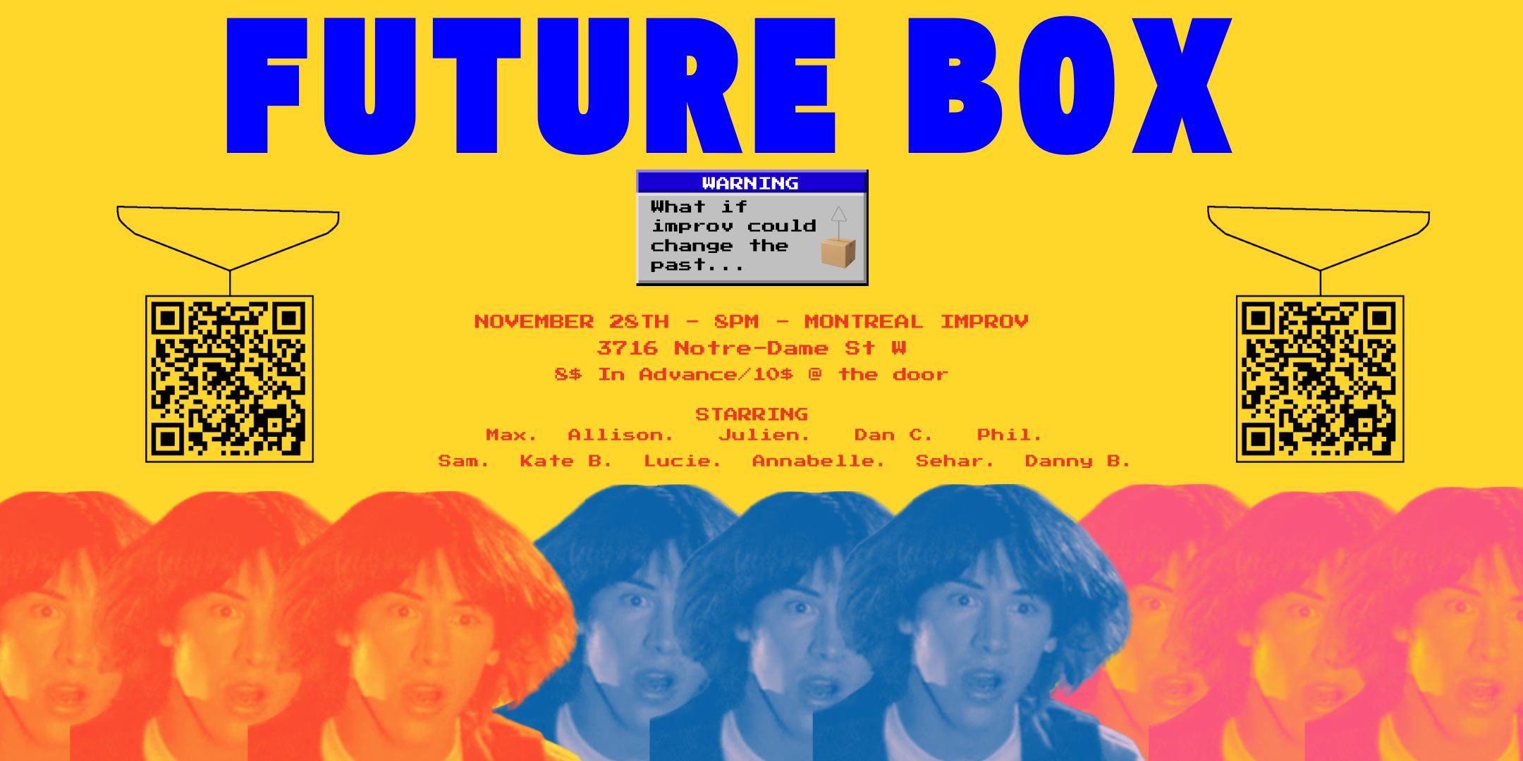 Talented improvisers will illustrate the butterfly effect playing out from your very own life. Watch a parallel universe spawn in front of your eyes with Future Box!