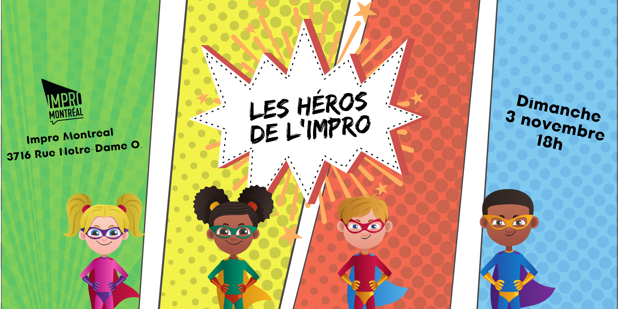 Une heure de scènes improvisées mettant en vedette des artistes émergents de l'école d'improvisation de Montréal !