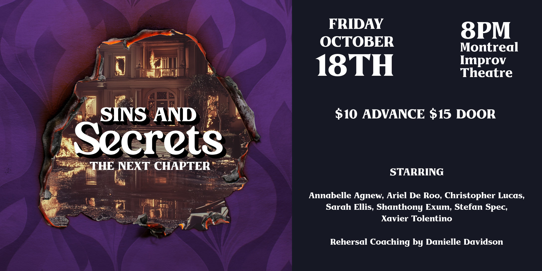 YES, that’s right, it is the return of SINS & SECRETS - the serialized comedic soap opera narrative co-produced by Shanthony Exum and Danielle Davidson. Spanning 3 scandal-filled months, each episode builds on the last, and with new characters in a new town it’ll be a wilder ride than ever before. So, save the dates and get ready for SINS & SECRETS - THE RETURN