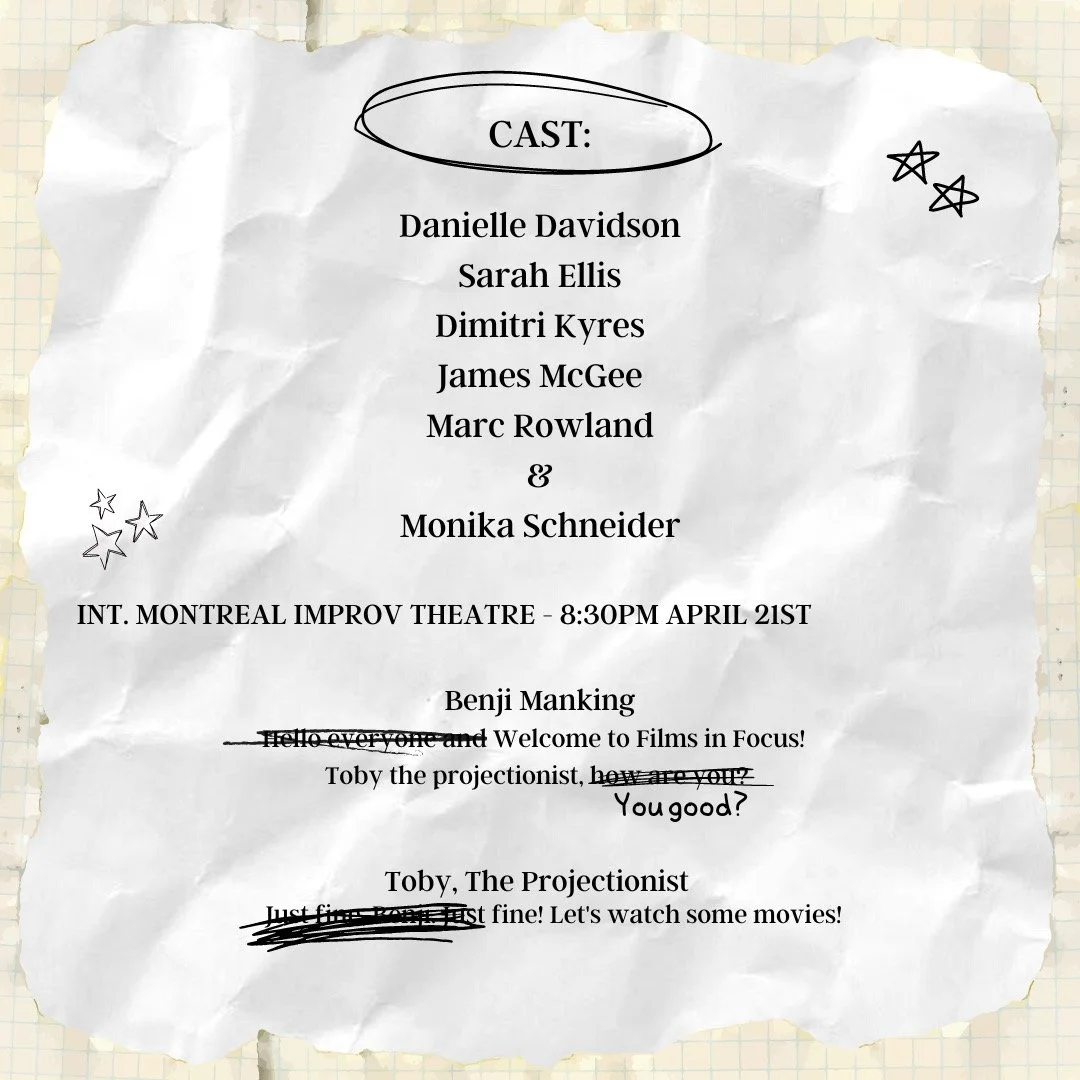 The hit improv comedy show Films in Focus returns to the stage at Montreal Improv for one night only with a new cast but the same Benji Manking as before!
