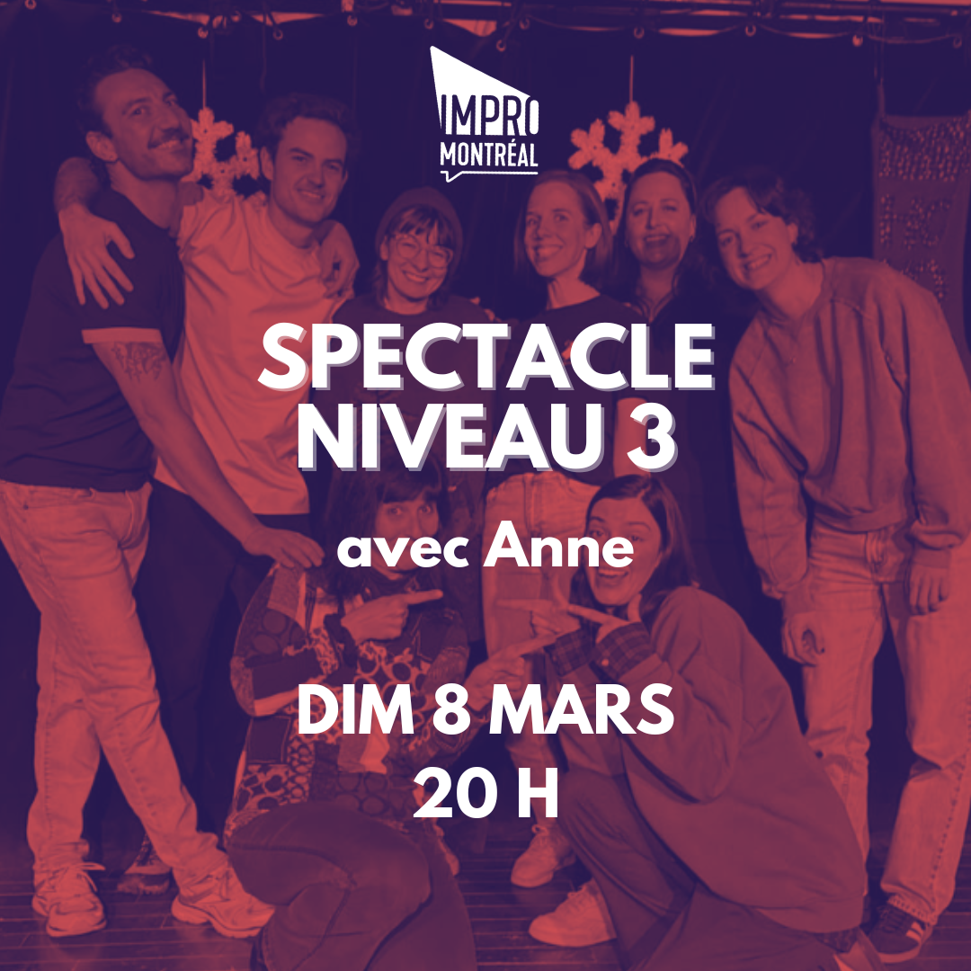 En première partie de Thème-tu?, venez encourager notre cohorte de niveau 3 dans leur spectacle de fin de session, animé par Anne !