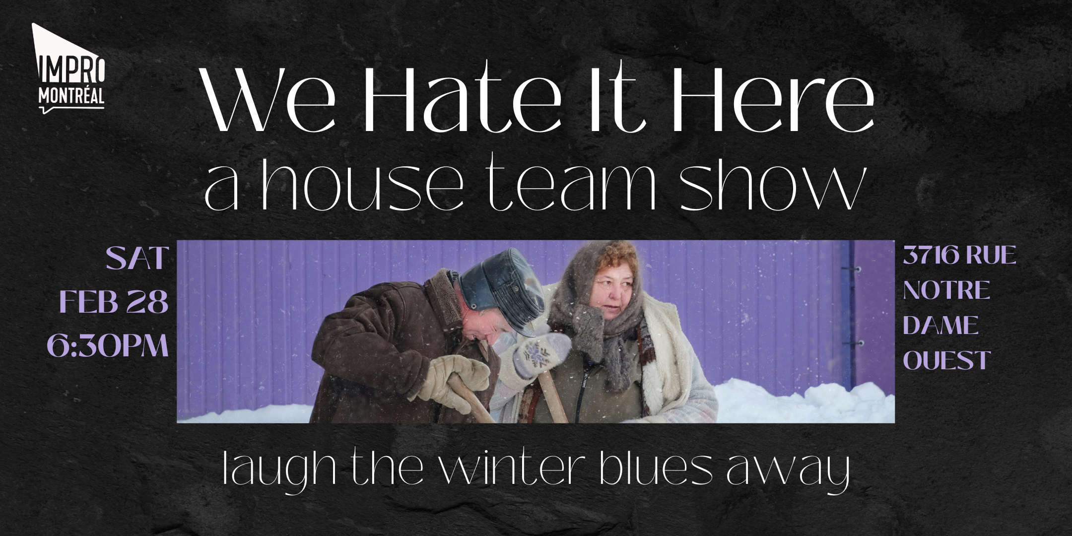 Impro Montréal / Montreal Improv operates on the storied and sacred lands of Tiohtiá:ke, a historical gathering place of many First Nations and indigenous communities, including the Kanien’kehá:ka (Mohawk) of the Haudenosaunee Confederacy, Atikamekw, Algonquin-Anishinaabe and Huron-Wendat, among others.